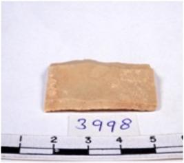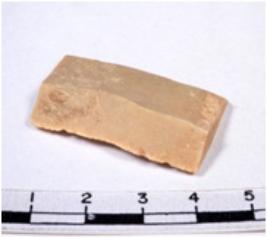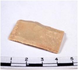 | Description / विवरण | A fragment of a rectangular shaped chert blade showing dorsal sides with sharp cutting edges having smooth surface and triangular section. |