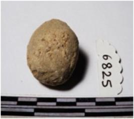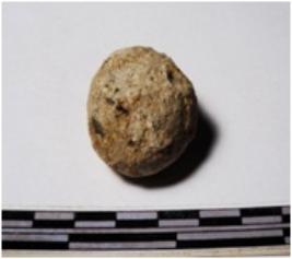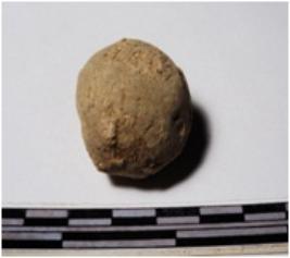 | Description / विवरण | A terracotta round in shape sling ball of rough surface. |