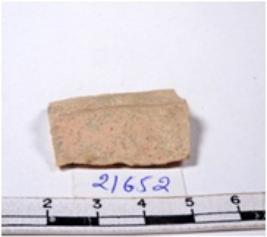 | Description / विवरण | A fragment of a rectangular shaped chert blade showing dorsal sides with sharp cutting edges having smooth surface and triangular section. |