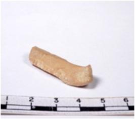 | Description / विवरण | A fragment of a rectangular shaped chert blade showing dorsal sides with sharp edges having smooth surface and triangular section. |