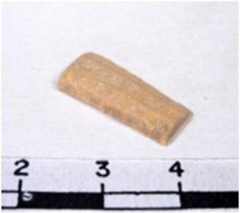 | Description / विवरण | A fragment of a rectangular shaped chert blade showing dorsal sides with sharp cutting edges having smooth surface and uneven section. |