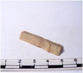 | Description / विवरण | A fragment of a rectangular shaped chert blade showing dorsal sides with sharp edges having smooth surface and triangular section. |