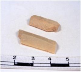 | Description / विवरण | A fragment of a rectangular shaped chert blade showing dorsal sides with sharp edges having smooth surface and triangular section. |