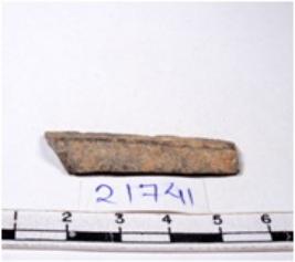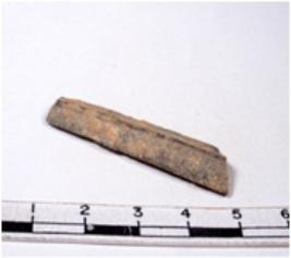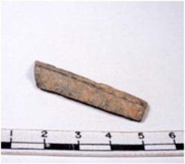 | Description / विवरण | A fragment of a rectangular shaped chert blade showing dorsal sides with sharp cutting edges having smooth surface and triangular section. |