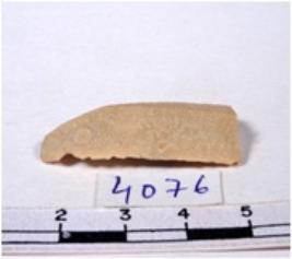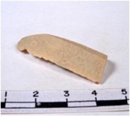 | Description / विवरण | A fragment of a rectangular shaped chert blade showing dorsal sides with sharp cutting edges having smooth surface and triangular section. |