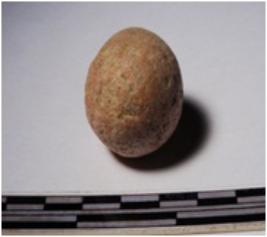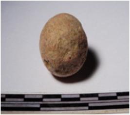 | Description / विवरण | A terracotta sling ball round in shape of smooth surface. |