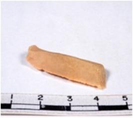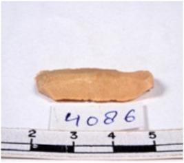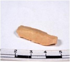 | Description / विवरण | A fragment of a rectangular shaped chert blade showing dorsal sides with sharp edges having smooth surface and triangular section. |