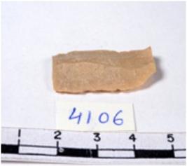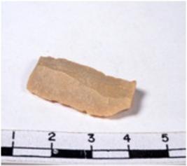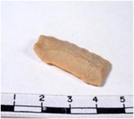 | Description / विवरण | A fragment of a rectangular shaped chert blade showing dorsal sides with sharp cutting edges having smooth surface and triangular section. |