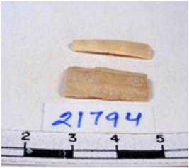 | Description / विवरण | A fragment of a rectangular shaped chert blade showing dorsal sides with sharp edges having smooth surface and triangular section. |