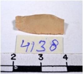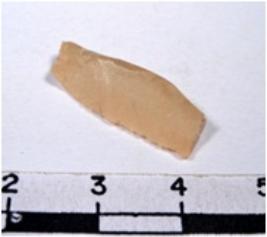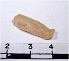 | Description / विवरण | A fragment of a rectangular shaped chert blade showing dorsal sides with sharp cutting edges having smooth surface and uneven section. |