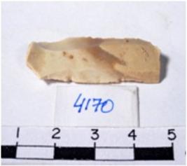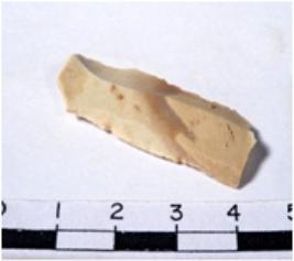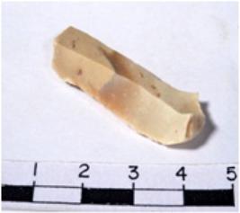 | Description / विवरण | A fragment of a rectangular shaped chert blade showing dorsal sides with sharp cutting edges having smooth surface and triangular section. |