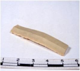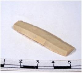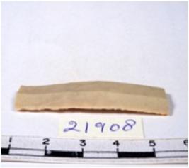 | Description / विवरण | A fragment of a rectangular shaped chert blade showing dorsal sides with sharp cutting edges having smooth surface and triangular section. |