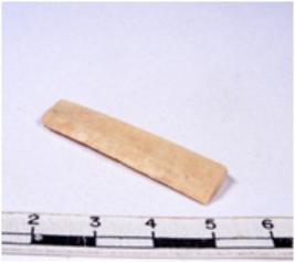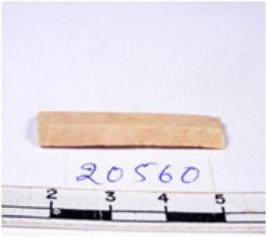 | Description / विवरण | A fragment of a rectangular shaped chert blade showing parallel sides with sharp edges having smooth surface and uneven section. |