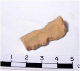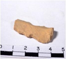 | Description / विवरण | A fragment of a rectangular shaped chert blade showing dorsal sides with sharp cutting edges having rough surface and triangular section. |