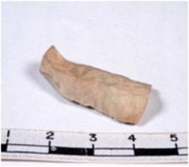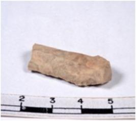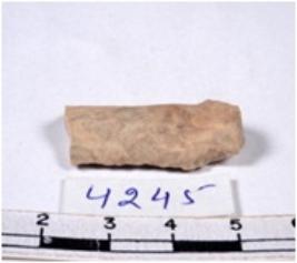 | Description / विवरण | A fragment of a rectangular shaped chert blade showing dorsal sides with sharp edges having smooth surface and triangular section. |