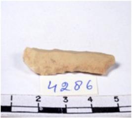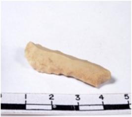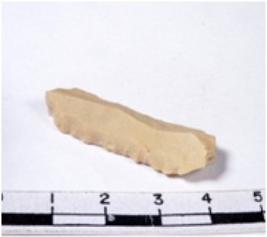| Description / विवरण | A fragment of a rectangular shaped chert blade showing dorsal sides with sharp cutting edges having smooth surface and triangular section. |