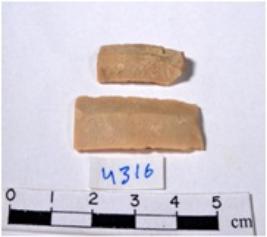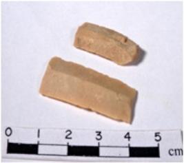 | Description / विवरण | A fragment of a rectangular shaped chert blade showing with dorsal sides with sharp cutting edges having smooth surface and triangular section. |