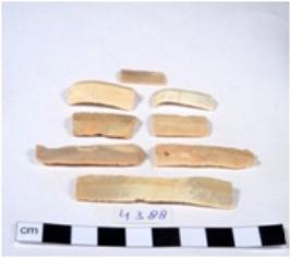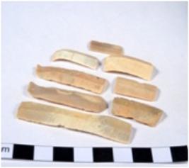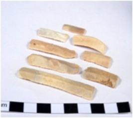 | Description / विवरण | A fragment of a rectangular shaped chert blade showing dorsal sides with sharp cutting edges having smooth surface and uneven section. |