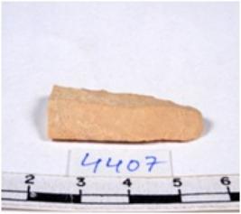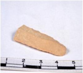 | Description / विवरण | A fragment of a rectangular shaped chert blade showing parallel sides with sharp edges having smooth surface and uneven section. |