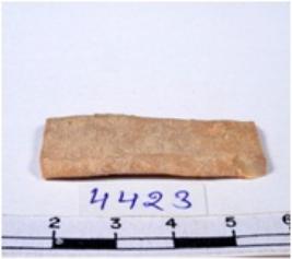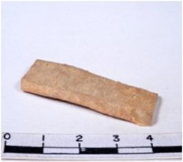 | Description / विवरण | A fragment of a rectangular shaped chert blade showing parallel sides with sharp cutting edges having smooth surface and uneven section. |
