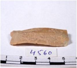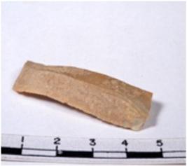 | Description / विवरण | A fragment of a rectangular shaped chert blade showing parallel sides with sharp cutting edges having smooth surface and uneven section. |
