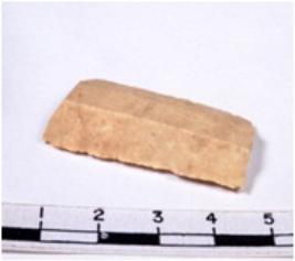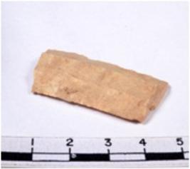 | Description / विवरण | A fragment of a rectangular shaped chert blade showing parallel sides with sharp cutting edges having smooth surface and triangular section. |