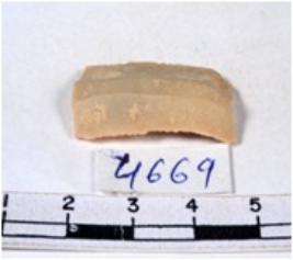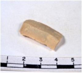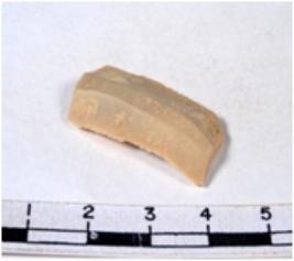 | Description / विवरण | A fragment of a rectangular shaped chert blade showing dorsal sides with sharp cutting edges having smooth surface and triangular section. |