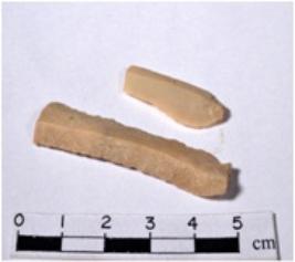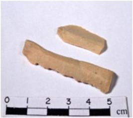 | Description / विवरण | A fragment of a rectangular shaped chert blade showing flat sides with sharp cutting edges having smooth surface and triangular section. |