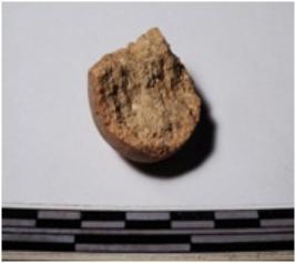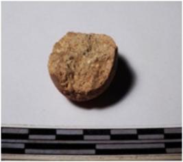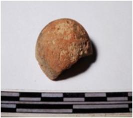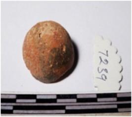 | Description / विवरण | A fragment of a terracotta sling ball globular in shape of smooth surface. |