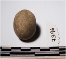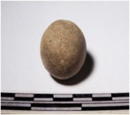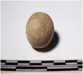 | Description / विवरण | A terracotta round in shape sling ball of smooth surface. |