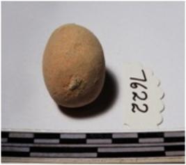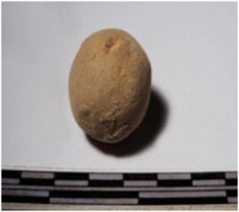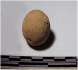 | Description / विवरण | A terracotta sling ball round in shape of smooth surface. |