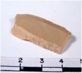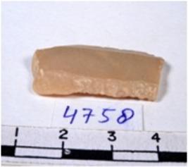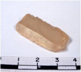 | Description / विवरण | A fragment of a rectangular shaped chert blade showing flat sides with sharp cutting edges having smooth surface and oval like section. |
