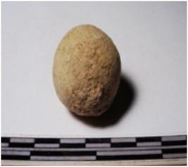 | Description / विवरण | A terracotta round in shape ring ball of rough surface. |