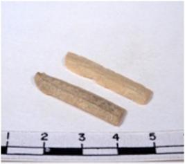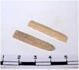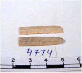 | Description / विवरण | A fragment of a rectangular shaped chert blade showing flat sides with sharp cutting edges having smooth surface and uneven section. |