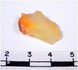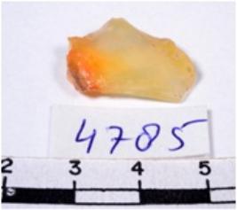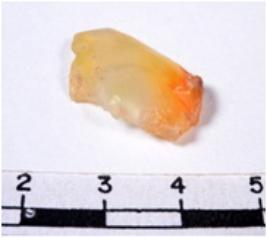 | Description / विवरण | A fragment of a rectangular shaped chert blade showing dorsal sides with sharp cutting edges having smooth surface and triangular section. |