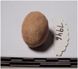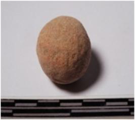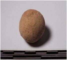 | Description / विवरण | A terracotta sling ball round in shape of smooth surface. |
