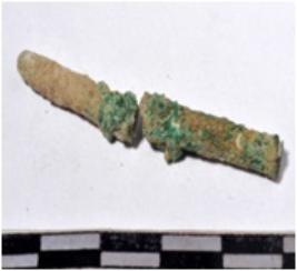 | Description / विवरण | A fragment of a copper rod, oval in section of rough surface. |