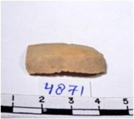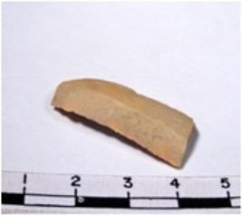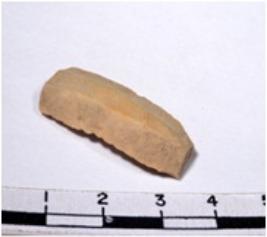 | Description / विवरण | A fragment of a rectangular shaped chert blade showing dorsal sides with sharp cutting edges having smooth surface and triangular section. |