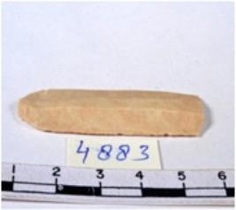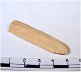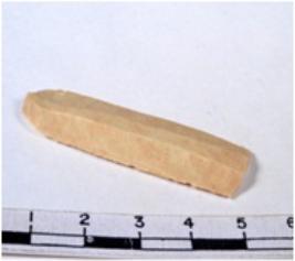 | Description / विवरण | A fragment of a rectangular shaped chert blade showing dorsal sides with sharp cutting edges having smooth surface and triangular section. |