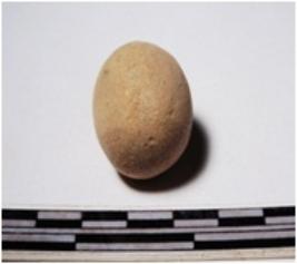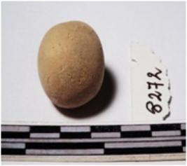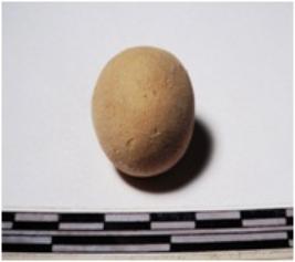 | Description / विवरण | A terracotta round in shape sling ball of smooth surface. |