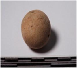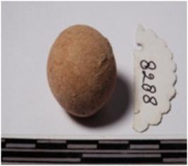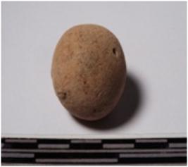 | Description / विवरण | A terracotta sling ball round in shape of smooth surface. |