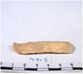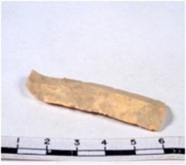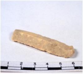 | Description / विवरण | A fragment of a rectangular shaped chert blade showing dorsal sides with sharp edges having smooth surface and triangular section. |