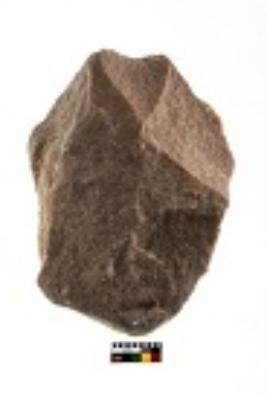 | Description / विवरण | Specimen of side scraper with bold flaking at right side, other side kept untouched for holding purpose |