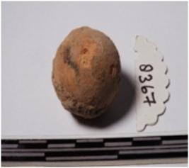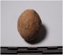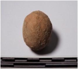 | Description / विवरण | A terracotta sling ball round in shape of smooth surface. |