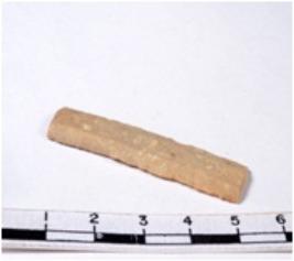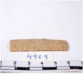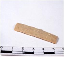 | Description / विवरण | A fragment of a rectangular shaped chert blade showing dorsal sides with sharp cutting edges having smooth surface and uneven section. |
