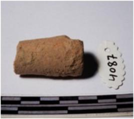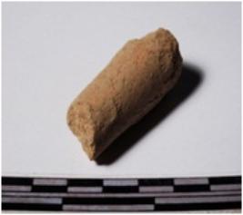 | Description / विवरण | A fragment of a terracotta cone, broken pointed end, circular in section of rough surface. |