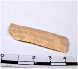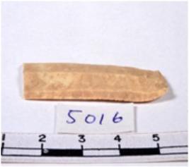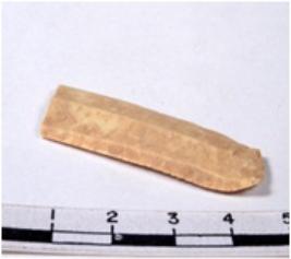 | Description / विवरण | A fragment of a rectangular shaped chert blade showing dorsal sides with sharp cutting edges having smooth surface and triangular section. |