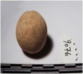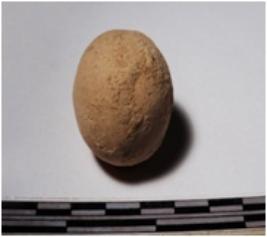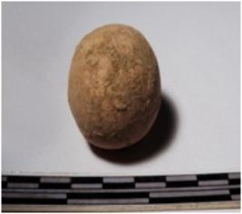 | Description / विवरण | A terracotta sling ball round in shape of smooth surface. |