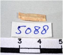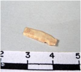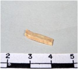 | Description / विवरण | A fragment of a rectangular shaped chert blade showing dorsal sides with sharp cutting edges having smooth surface and uneven section. |