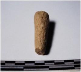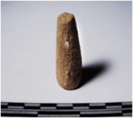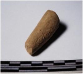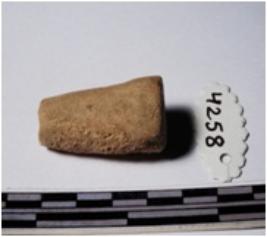 | Description / विवरण | A fragment of a terracotta cone broken pointed end circular in section of rough surface. |